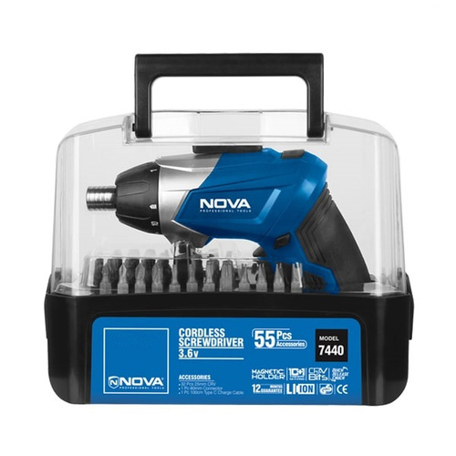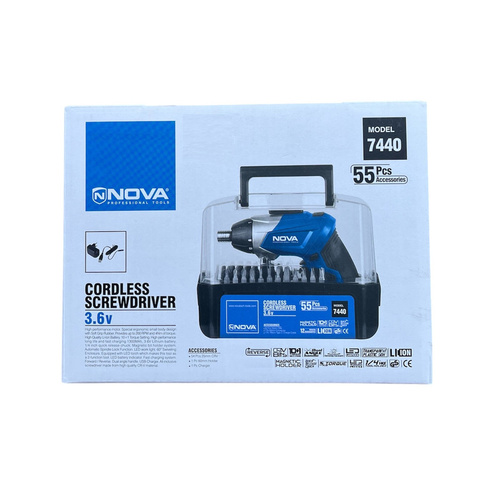 پیچ گوشتی شارژی نووا مدل 7440 مجموعه 55 عددی