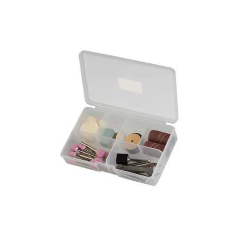 - دربردارنده 40 قطعه سری و متعلقات کاربردی ابزارآلات چرخشی برای انجام فعالیتهای سنبادهزنی، برش، سنگزنی، کندهکاری، تمیزکاری، پرداخت و ...